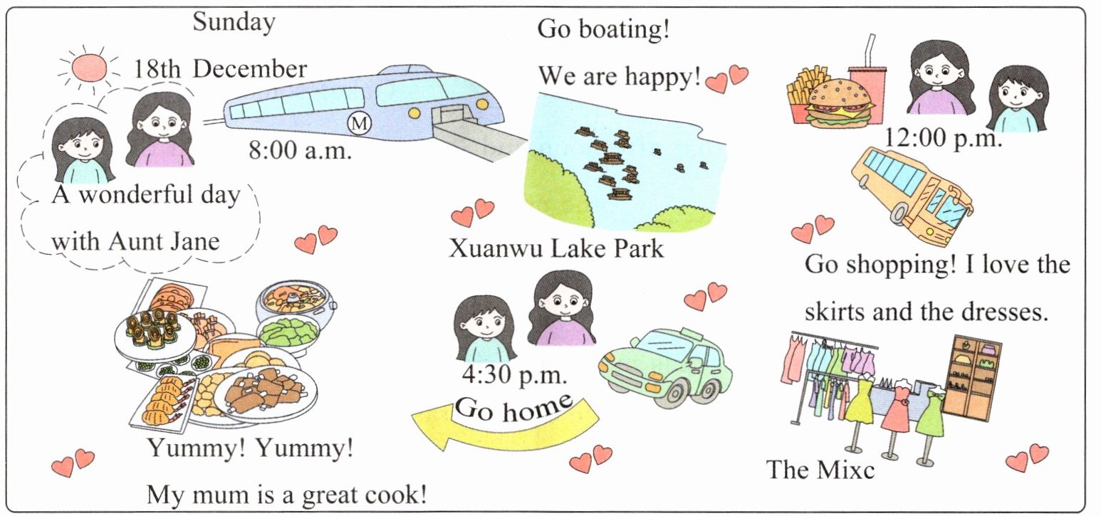 ( )3. Lily and Aunt Jane walked to the shopping centre and saw lots of nice clothes in the afternoon.
