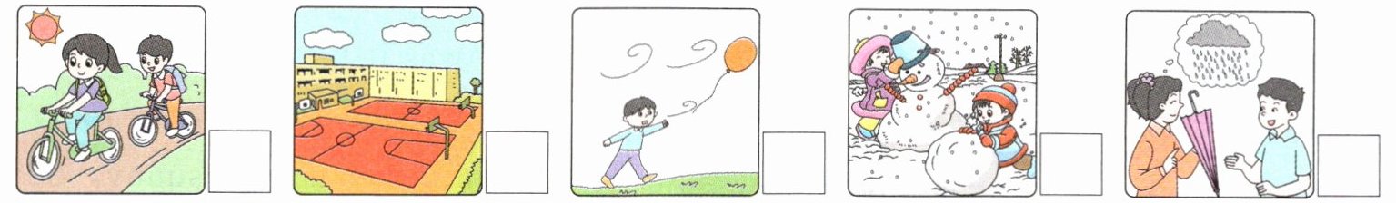 1. snowy 2. rainy 3. sunny 4. windy 5. cloudy 排序:3 5 4 1 2
