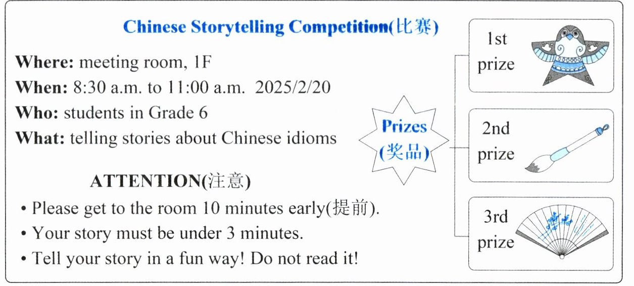 阅读“用英语讲中国故事”比赛海报的内容,判断正(T)误(F)。(5 分)