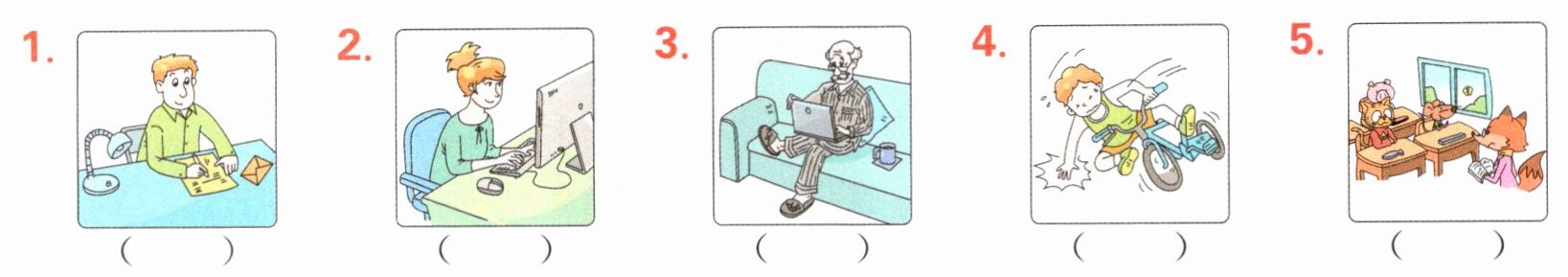 ( )3. A. Cleaning the window. B. Having a lesson. C. Looking at the window.