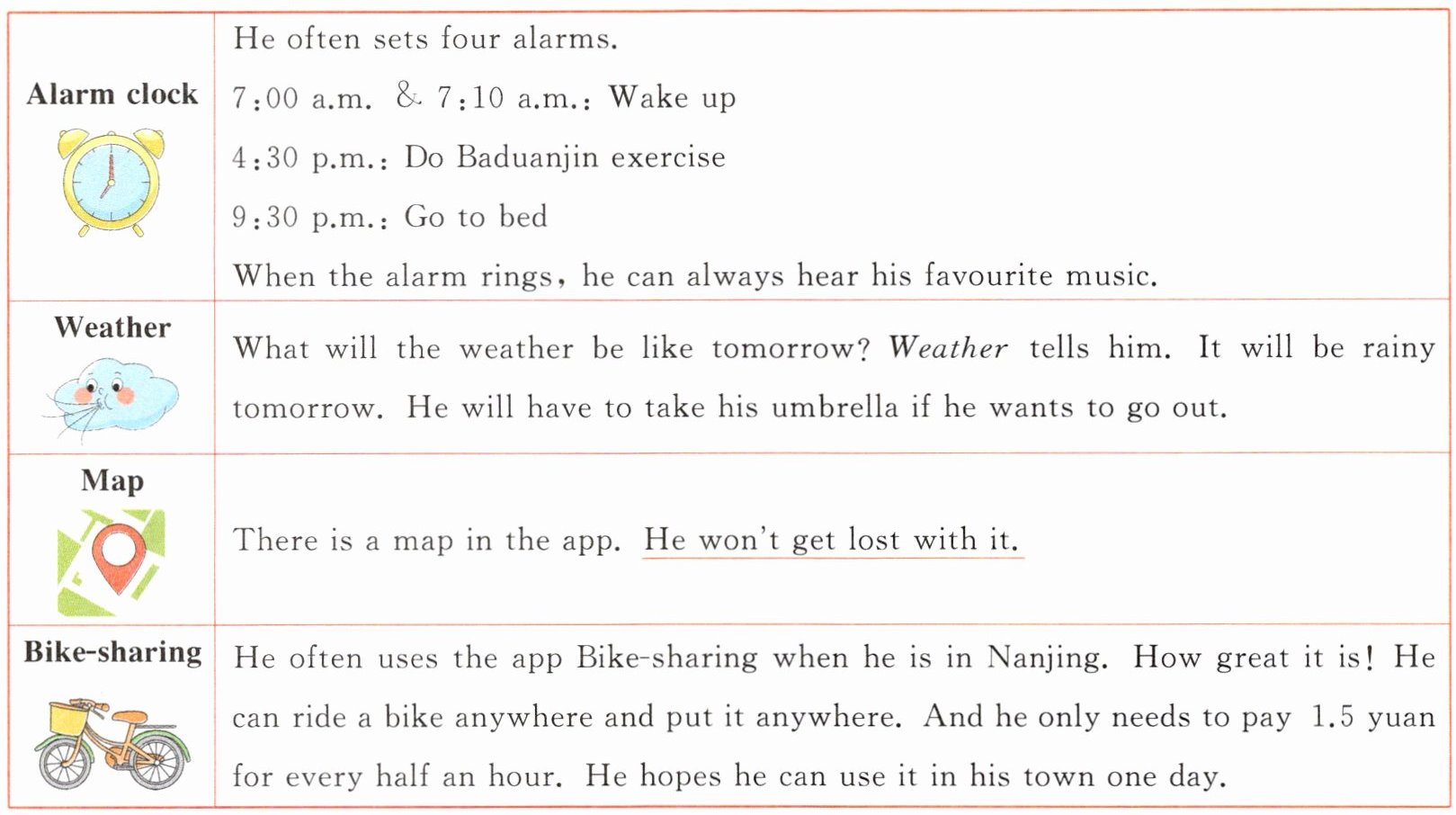 二、(扬州高邮市期末改编)亮亮教会爷爷使用手机打车之后,还教他使用其他一些常见的软件。请根据以下材料,选择正确的答案。