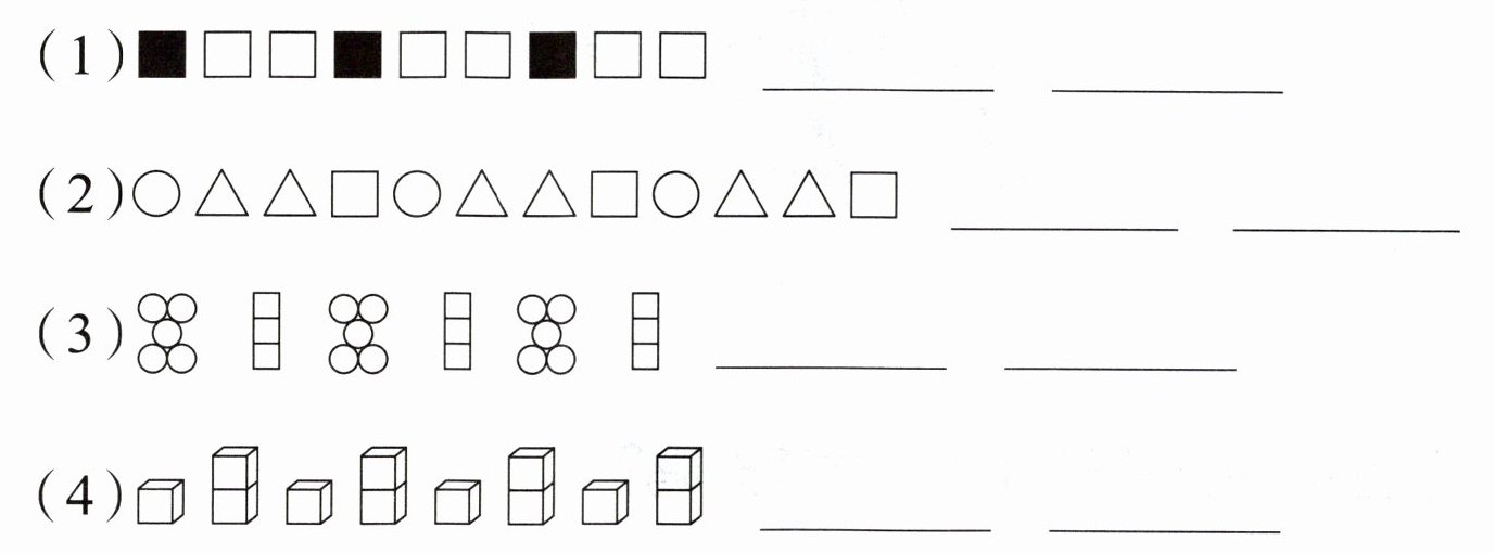 (1)观察可得规律是“$■□□$”为一组循环,所以后面应接着画$■$,$□$,$□$。