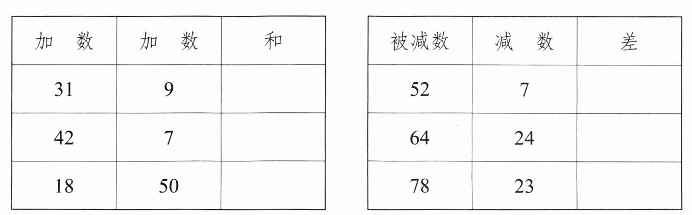【解析】:根据加法和减法的运算规则,加数+加数=和,被减数-减数=差。