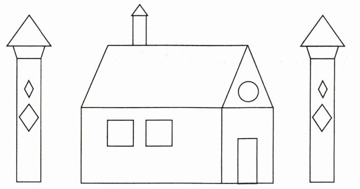 【解析】:通过观察图形,分别数出每种图形的数量。三角形:仔细数屋顶、烟囱顶等部分,可得有$5$个;长方形:数房子主体、门、柱子等部分,有$7$个;正方形:数窗户等部分,有$2$个;平行四边形:数柱子上的菱形(菱形是特殊的平行四边形),有$4$个;圆形:数房子上的圆形部分,有$1$个。