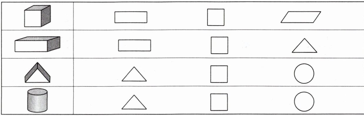 5) 用左边的物体可以画出右边的哪个图形?把它圈出来。