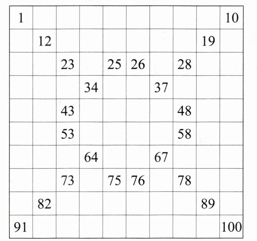 第十行:已知$91$、$100$,中间依次为$92$、$93$、$94$、$95$、$96$、$97$、$98$、$99$。