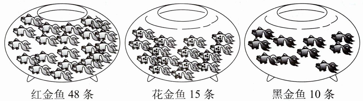 (2)因为$48$与$10$相差较大,所以黑金鱼比红金鱼少得多;$10$比$15$少一些,即黑金鱼比花金鱼少一些。