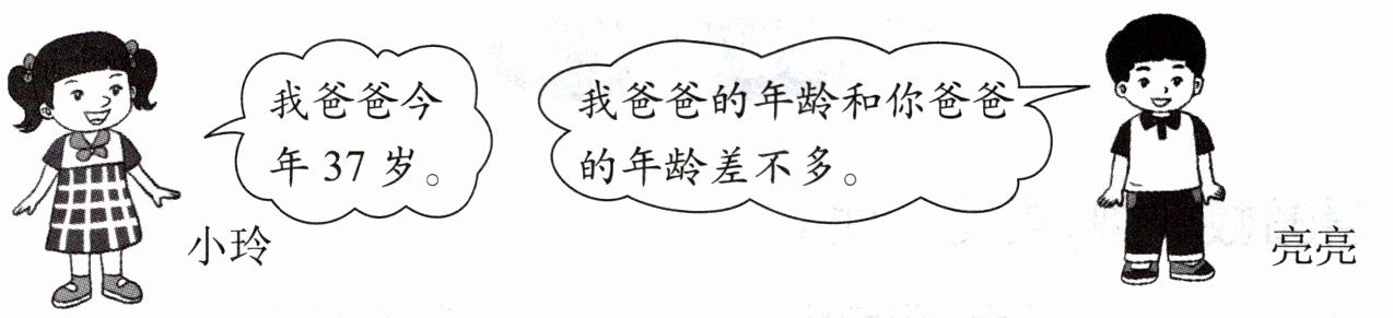 【解析】:通常情况下,父母与孩子的年龄差距在二十多岁到三十多岁比较合理。30岁与孩子年龄差距可能较小(假设亮亮是儿童),50岁相对来说对于有儿童阶段孩子的父亲年龄可能偏大,39岁比较符合一般家庭中父亲在孩子儿童时期的年龄范围。