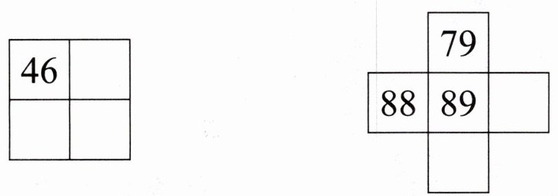 对于第一个图,$46$右边的数是$46 + 1=47$,$46$下面的数是$46+10 = 56$,$56$右边的数是$56 + 1=57$。