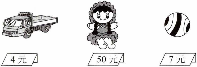 2. 一个布娃娃比一辆玩具卡车贵多少钱?$50 - 4 = 46$(元)