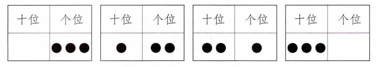 (3)照样子,用●在数位表中分别摆出不同的数。