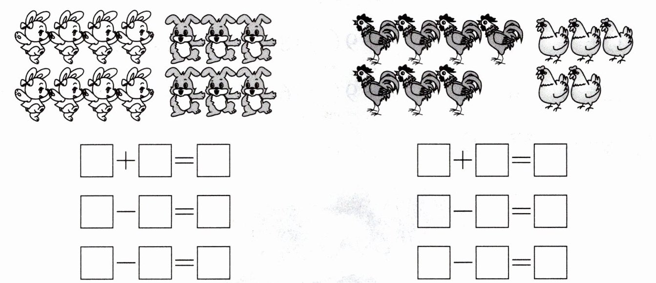 减法算式:已知总数和其中一部分,求另一部分,用减法。总数是$14$,若知道白兔数量$8$,则灰兔数量为$14 - 8 = 6$;若知道灰兔数量$6$,则白兔数量为$14 - 6 = 8$。