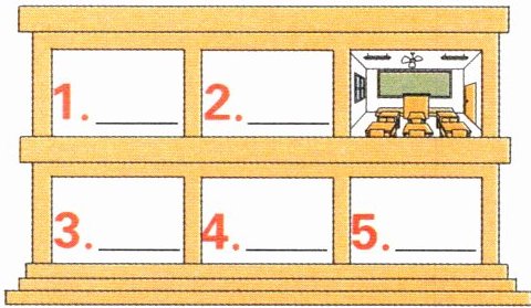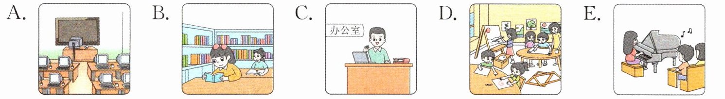 四、(2025·徐州新沂市期末)根据短文介绍,将图片序号填入相应的位置,完成学校布局图。