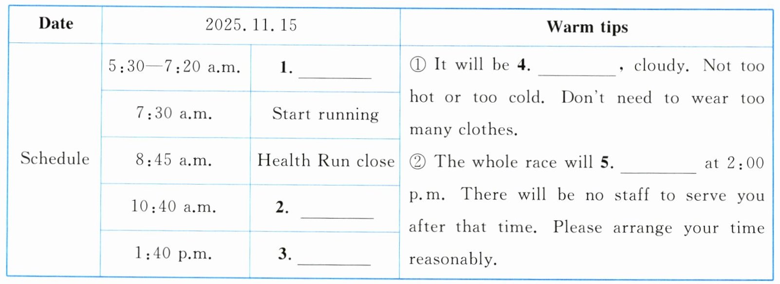 十二 (2025·南京高淳区期末改编)城市马拉松(Marathon)比赛即将开始,主办方正在制作宣传单。阅读宣传单内容,完成下列任务。(11分)