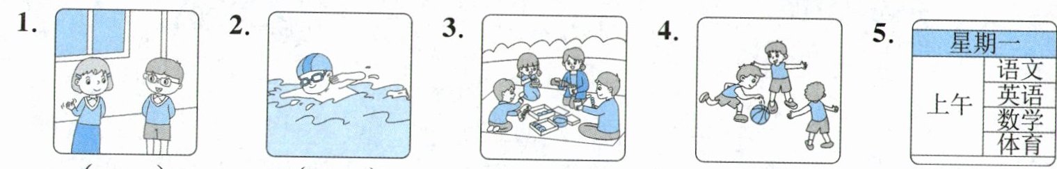 一 听录音,选出你所听到的内容或与所听内容相符的图片。(听两遍,5分)