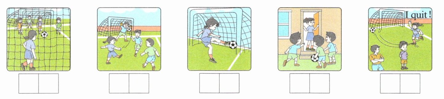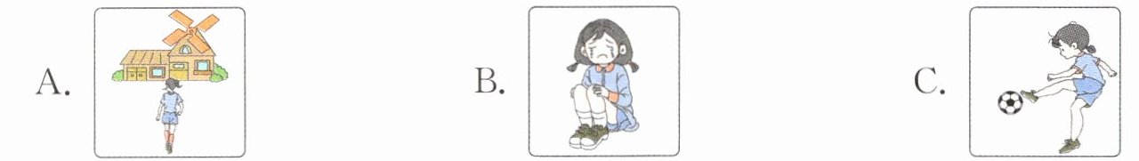 On a Saturday morning, Mia plays football with her friends in the playground. She tries and tries, but she can't get a goal(进球). “I quit!” Mia shouts and runs back home.