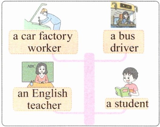 This is my family tree. There are four people in my family. This is my father. He w____ in a car factory. He's a worker. This is my mother. She's a bus driver. She d____ a bus every day. This is my s____. She's an English teacher in my school. She t____ English well. I'm a s____. I'm good at PE and Maths. I love my family.