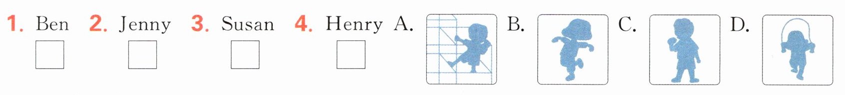 四、(2025·连云港灌南县期末)根据描述,将人物的名字与其影子(shadow)相匹配。