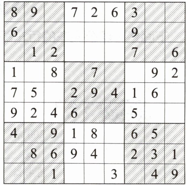 ②在$3×3= 9$的方格内,包含1~9中所有的数字。