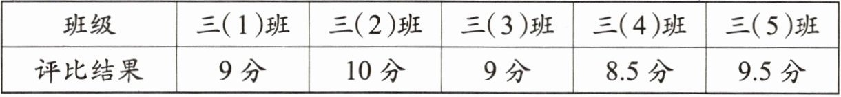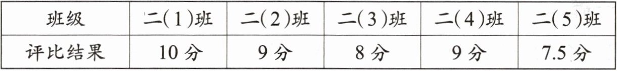 (1)请把上面的评比结果整理到下面的表格中。(注意将表格填写完整)