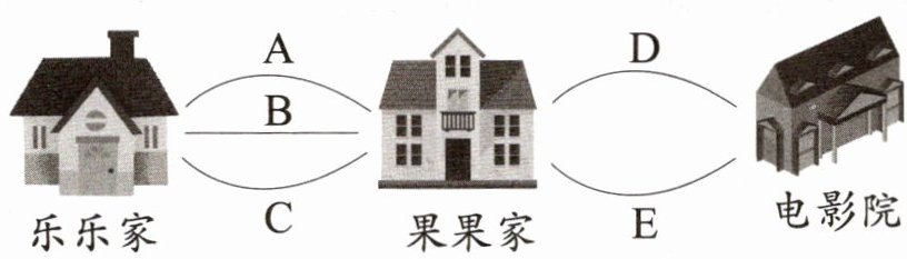 2 放假了,乐乐到果果家邀他一起去看电影,他们一共有多少条路线可选?