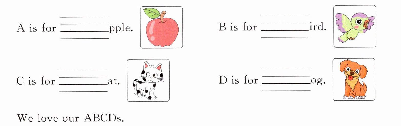 一、阅读《ABCDs》的歌词,并根据图片提示写出缺失的字母。