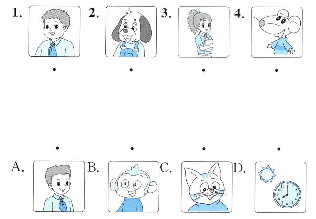 二 听录音,将相关联的图片连线。(听两遍,8分)