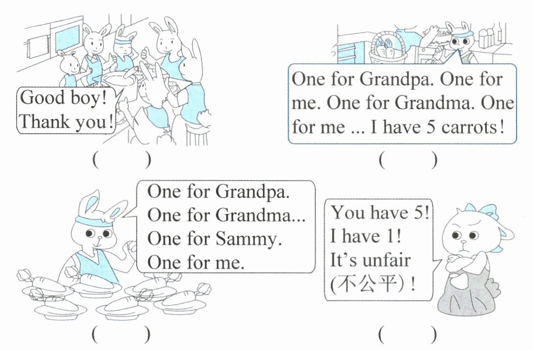 十一 新趋势 图片排序 阅读小兔子和家人之间的对话,给下列图片排序。(6分)