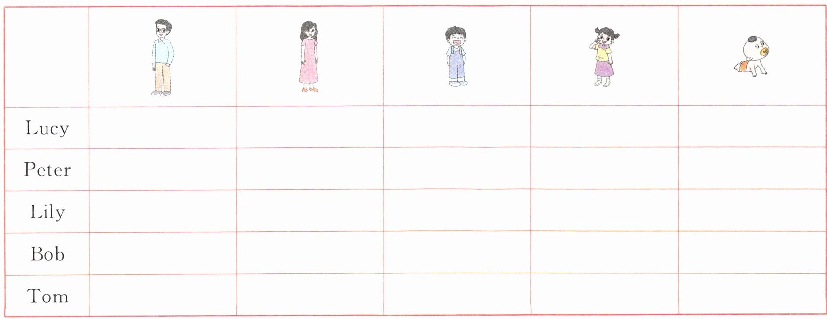 七、听录音,在每位小朋友介绍的家庭成员下画“√”。(听两遍)