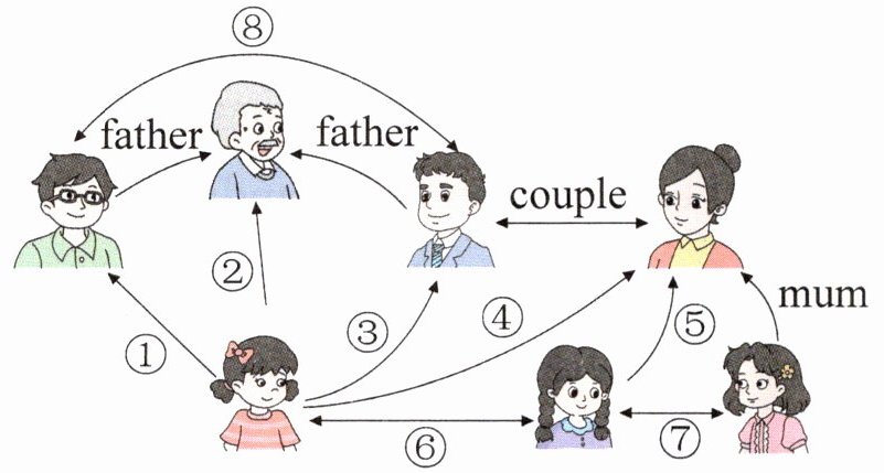 二、新素养 逻辑推理 根据所给提示,从方框中选择合适的称呼补全人物关系。
