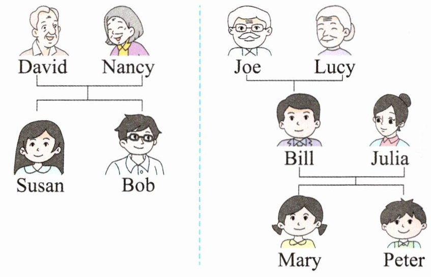 1. grandfather 2. grandma 3. aunt 4. uncle 5. cousin
