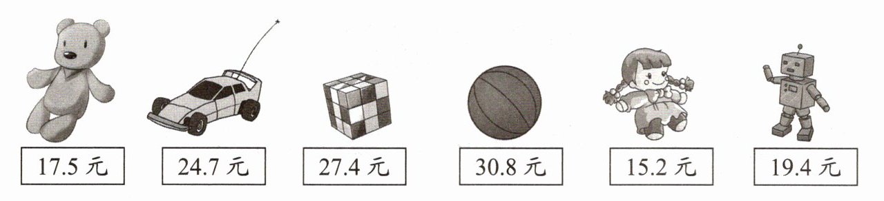 要判断$50$元够不够买三件不同的玩具,可先找出价格最低的三件玩具,即玩具熊$17.5$元、布娃娃$15.2$元、机器人$19.4$元。