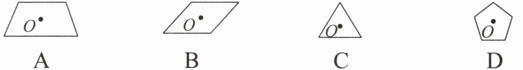 A选项,梯形绕点O旋转$180^{\circ}$后不能与原图重合,不是中心对称图形。