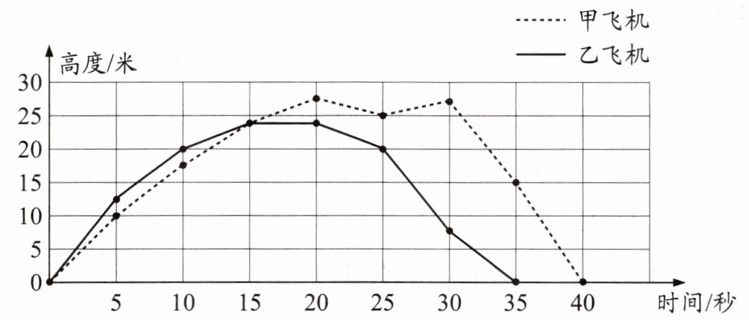 (2)由图可知,起飞后第10秒甲飞机的高度大约是20米,乙飞机的高度大约是15米。