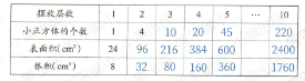 把一些棱长为2cm的小正方体摆成下面的形状,然后完成下表。