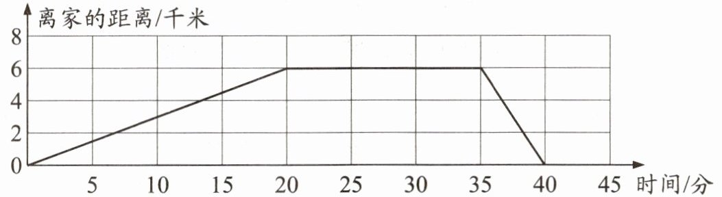 (1)由图可知,在$20$分钟到$35$分钟时,小明离家的距离不变,都是$6$千米,