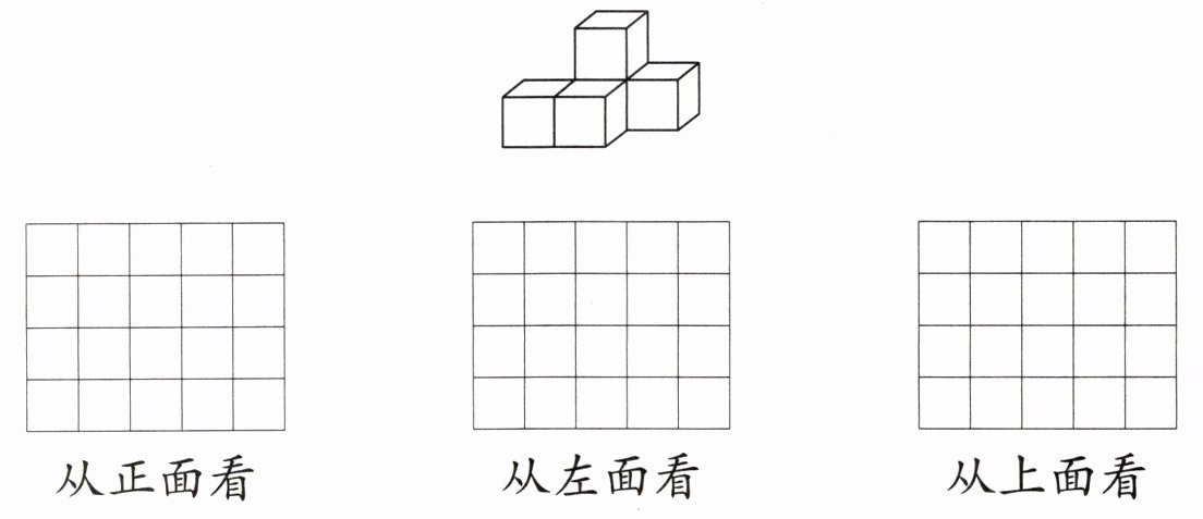 3 从不同的方向观察下面的几何体,画出看到的图形。