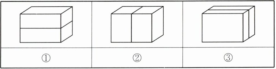 12. 将一个大长方体分成两个完全一样的小长方体,按如图所示的三种切法,表面积分别增加50平方厘米、40平方厘米、90平方厘米。原来大长方体的表面积是( )平方厘米。
