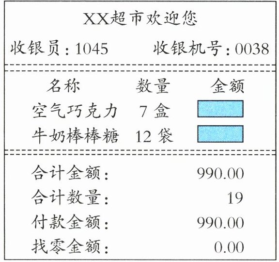 牛奶棒棒糖:$990÷(7×3 + 12)=30$(元/袋)