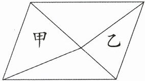13. 如图,平行四边形的面积是60平方米,甲的面积占总面积的$\frac{1}{3}$,乙的面积是( )平方米。