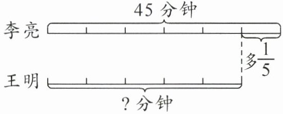 (1)比王明用的时间多$\frac{1}{5}$ (2)$45÷\left(1+\frac{1}{5}\right)=37.5$(分)