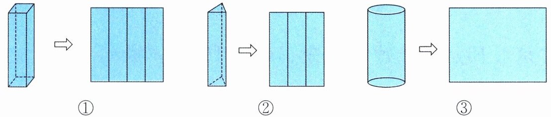 5. 亮点原创 数学探索:如下图,分别将3个高是12厘米的立体图形的侧面展开。