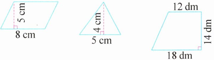 $8 × 5 = 40 ( \mathrm { cm } ^ { 2 } ) $ $5 × 4 ÷ 2 = 10 ( \mathrm { cm } ^ { 2 } )$