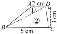 5. 亮点原创·如图是一个不规则梯形,上底长度是2厘米,下底长度是6厘米,高为3厘米。小亮忘记了梯形的面积计算公式,他想用其他图形的面积计算公式来求该梯形面积。请你帮小亮完成。