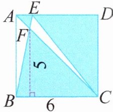 30 解析:因为三角形ABE与三角形AEC同底等高,所以它们的面积相等,又因为它们都包含三角形AEF,所以两个空白三角形的面积相等;因为三角形ABC与三角形ADC的面积相等,且分别包含了一个空白三角形,所以剩余图形的面积相等,即三角形AEF的面积 + 三角形EDC的面积 = 三角形BFC的面积。因此涂色部分的面积就是2倍的三角形BFC的面积。