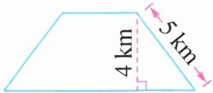 3. 有一片等腰梯形阔叶林,已知它的周长是24千米,工作人员只测得该梯形的高与一条腰的长度(如图)。
