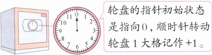 6. 新情境 保险箱 下图是保险箱的轮盘,多次转动轮盘即可打开保险箱(指针固定不动),规定按顺时针方向转动轮盘记作正。按照“+3”“-5”“+6”“-1”转动后,指针所指的数是( )。