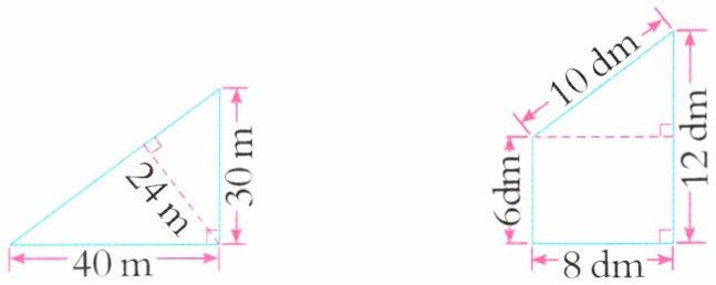 $ 40 × 30 ÷ 2 = 600 (m^{2}) $ $ (6 + 12) × 8 ÷ 2 = 72 (dm^{2}) $