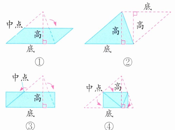 1. 下面推导三角形面积公式的方法中正确的有( )种。