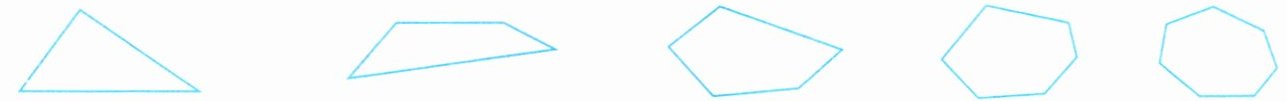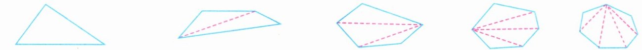 我的思考 因为三角形的内角和是 $ 180 ^ { \circ } $,所以我们可以根据三角形的内角和来探索其他多边形的内角和。如下图,从某个顶点出发作对角线,将多边形分割成三角形。